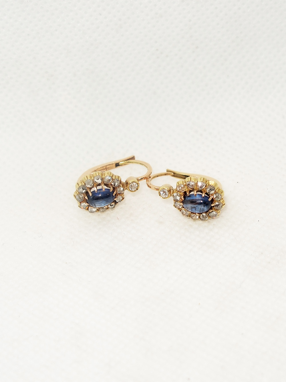 Naušnice od žutog zlata sa safirima i malim dijamantima